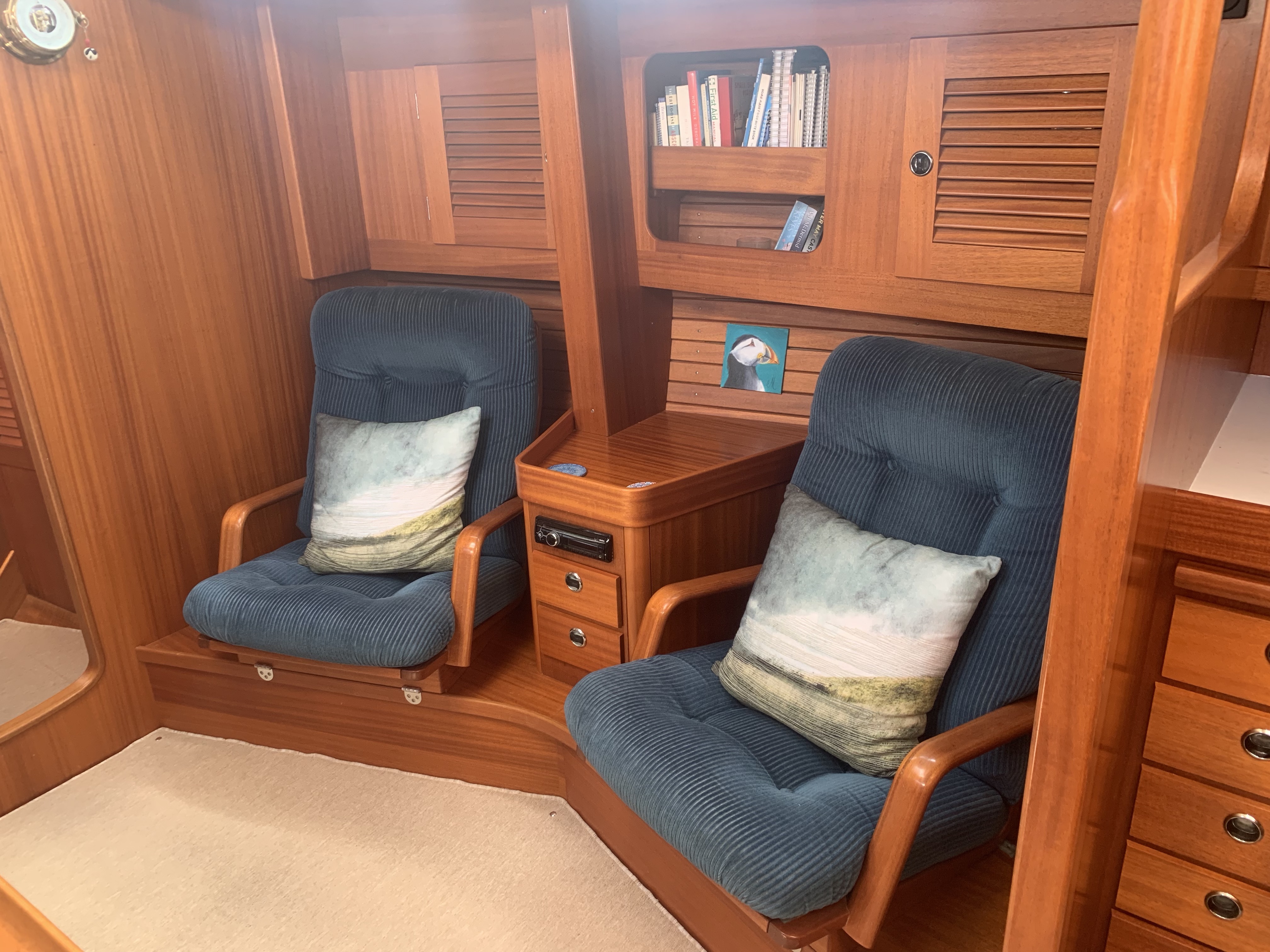 So as time passed and I refined my own mental systems for where things go and my body got used to the need to pretzel myself into odd places (think of me leaning across both the engine and the generator, trying not to break or catch myself on anything as I help Rick with a seacock that was stuck) I felt like I had truly arrived back on the boat. The boat felt more in sync and me with it. Everything has it’s place until work is being done and then EVERYTHING is taken out! And it shows. She looks great now.