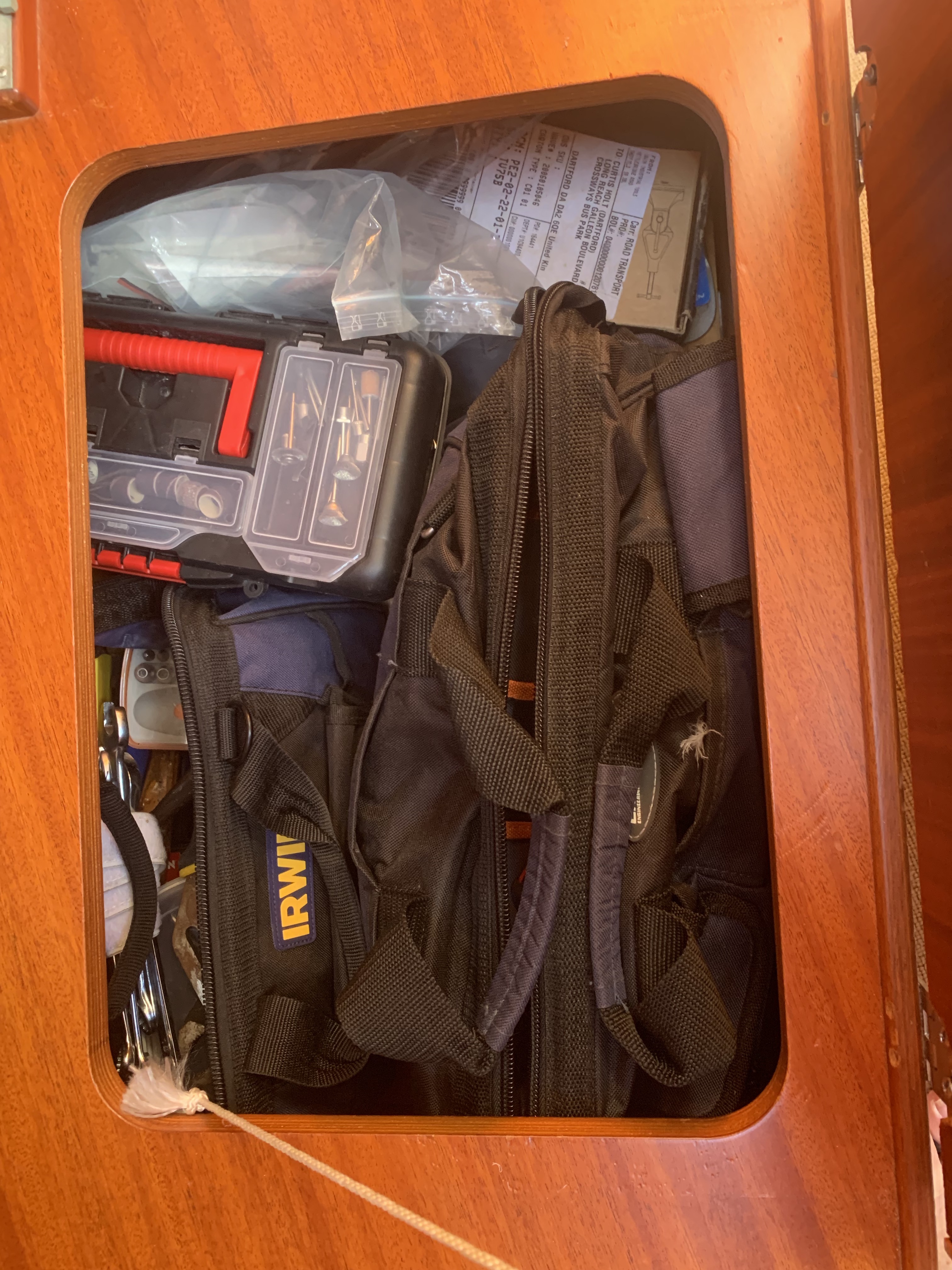 Oh yes, the spare pump can come out of the cupboard we store the wine in……because the wine is never needed. Joking! Wet weather gear can be well stowed as in Greece and Turkey it’s not really needed as it’s never cold enough. And perhaps the giant socket set that weighs 10 kilos can be stowed away under the fenders and not in the clothing cupboard where it falls over constantly.