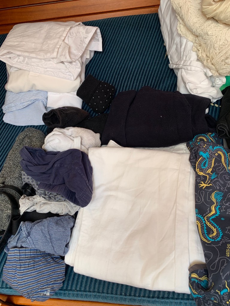 Thankfully I had taken a few photos of clothes we had left on board when I was packing up so we had a small idea of what we needed to add to.