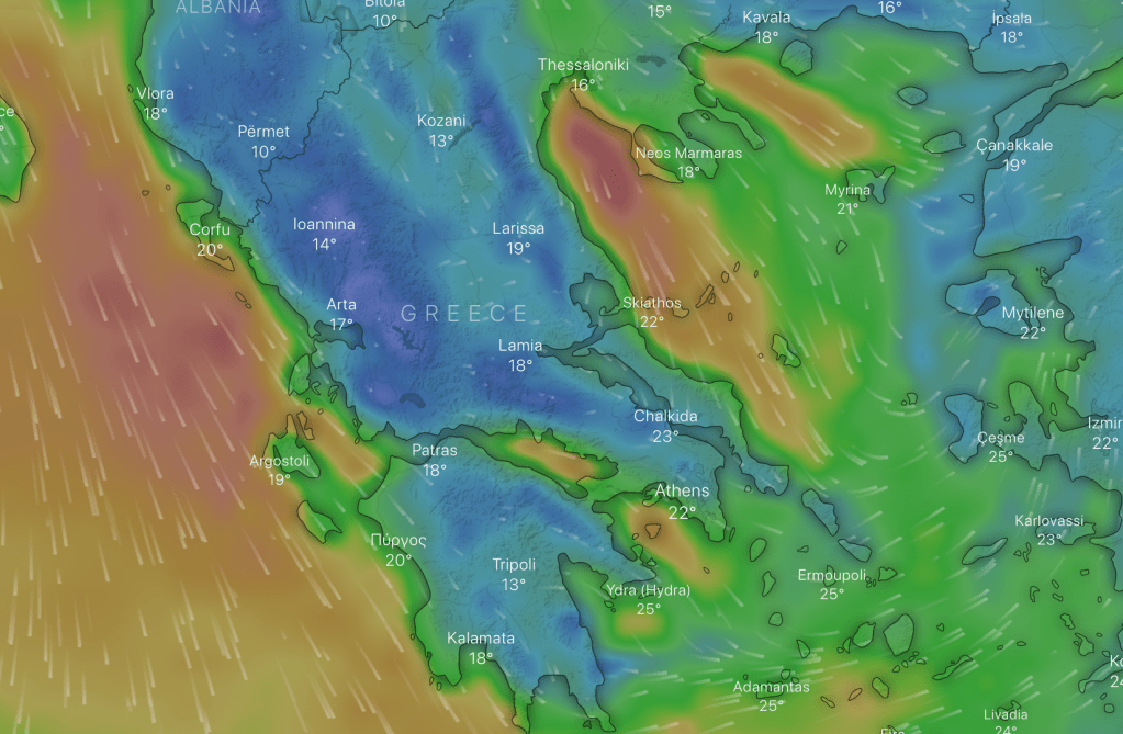 With any extended sailing adventure conversations between us and with other yachties always revolves around the weather and where you will go with this precious summer time. This year in the Aegean it has been very windy. To the point that many people are really over it and are planning to move on to less windy places like Turkey or over to the Ionian to get away from the being holed up in anchorages waiting for high winds to abate or being forced out into them due to commitments to be in specific places at set times. The Meltemi (the summer northerlies) have barrelled down from Macedonia or Turkey and the Black Sea with little break between them. This is the unusual part. They are the prevailing summer winds and as such are always expected but they usually follow a pattern of 4/5 days of wind then a break between them of a similar length or longer.