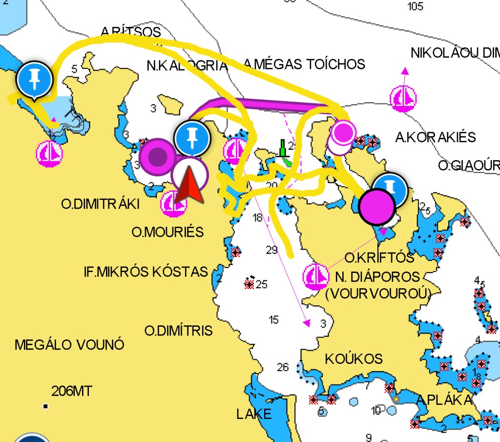 The following morning, we made our way South down the Evia Channel meeting up with an excellent couple, Theresa and Paul on their boat in a lovely anchorage called Eritria. They’d given us lots of good advice about travelling through the bridge after doing it several nights before us. We had a great few days with them while waiting out some strong breezes then headed south for Cape Sounion and the Temple of Poseidon before finishing our southbound route for this season on the island of Poros.