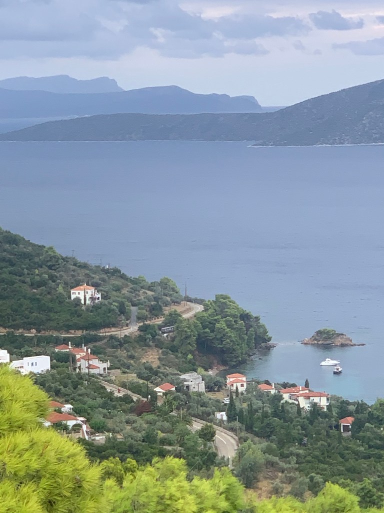 We visited the beautiful island of Alonissos, as we slowly headed south and hired a car to see both the island and the anchorages we couldn’t go to because the wind was all wrong. It was also actually raining. A bit of a shock after almost endless months of blue skies with just the odd thunderstorm.