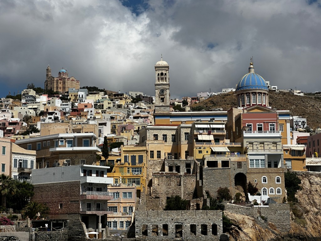 Then it was off to Delos, the island at the centre of it all. We sailed to an overnight stop on Syros then the following morning just had a look at the main town of Ermopouli before crossing to Riniea across a deep vlue velvet sea full of tiny striped dolphins.