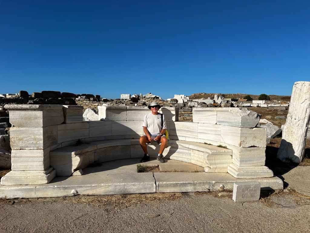It was impressive. But I also found it a sad place. None of the statues had heads, they’d all been hacked off and taken away as trophys, one statue even had its marble leg amputated and taken off by foreign looters. It’s probably in a museum somewhere. The lions are mostly headless or missing legs, the sacred lake was drained in 1900 as its stagnant waters were a breeding ground for malarial mosquitos. The amphitheatre was a broken wreck and a good imagination was required to put together all the pieces of Delos now lying on the ground. It felt utterly abandoned to me. The Gods and Goddesses had moved on leaving just the rubble for us to pick though. While this is just my opinion and I realise I am not upselling it I do still think it’s worth a visit. Bearing in mind its checkerboard history is not just a noble one and it’s a reminder that a place can be built upon the profane just as easily as the sacred and Delos found its fortune in both.