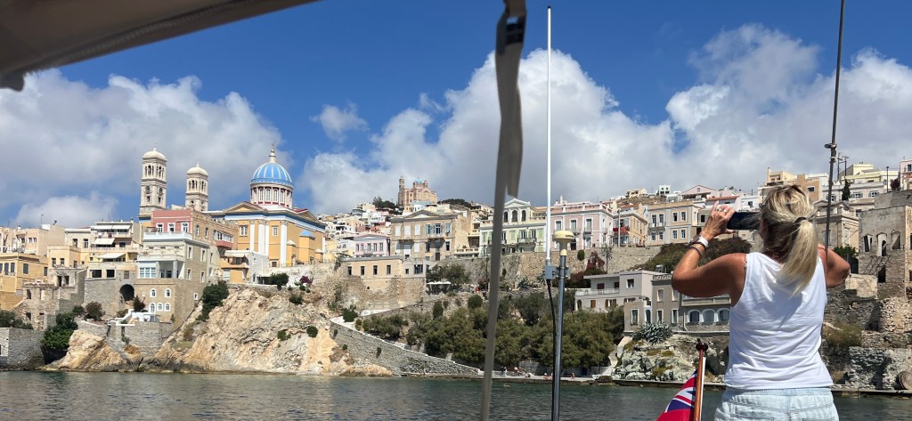 There’s a funny thing that happens in the Greek islands when its windy. Firstly, it’s windy a lot so this is not an isolated incident. Our sail across to Kithnos was in a fresh, flat (meaning no waves or swells to slow us down) 20 knots but as we came into the anchorage the wind was accelerating down the hills and we found ourselves pulling in our sails and then anchoring with the wind blowing up to 30 knots. Fortunately, it eased into the late afternoon dropping to nothing by sunset. It’s known as Katabatic winds and it happens often here as the hills are quite high and even though you’re on the lee side (the protected side) the winds can be up to 10 to 20 knots stronger as they rocket down the hillsides. In some places, like Mt Athos up in Halkidiki you are advised to sail up to a few miles offshore not to be caught up in them.