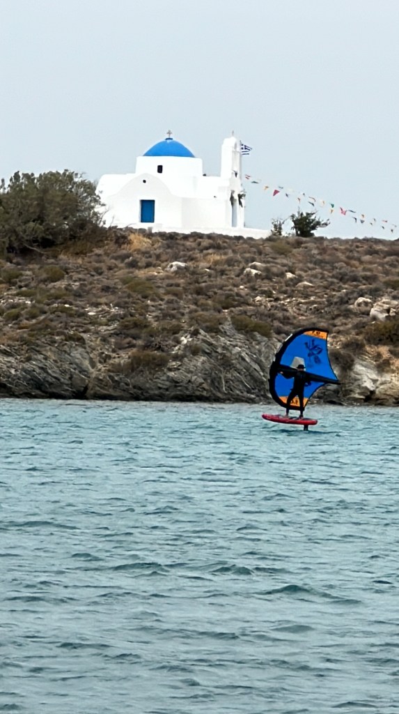 So, we use this information to decide where to go next and when to head there.  We might catch the tail of a Meltemi to make our way to the south as it blows from the north or catch a southerly north.  Then we look for anchorages that are protected from the wind (and waves). All of this heavily relies on having plenty of time as the weather can easily get in the way of plans.  To travel from place to place means picking the right weather and the right anchorages and being rushed because we need to collect someone or pick up gear or do anything in a set time frame can really mess with that.  It risks putting us in the uncomfortable situation of having to go when itโ€™s not ideal or safe or rescheduling things.  When people ask if they can visit an island we might be going to and it probably sounds a bit like I am trying to put them off when I canโ€™t give a clear answer but this is why.